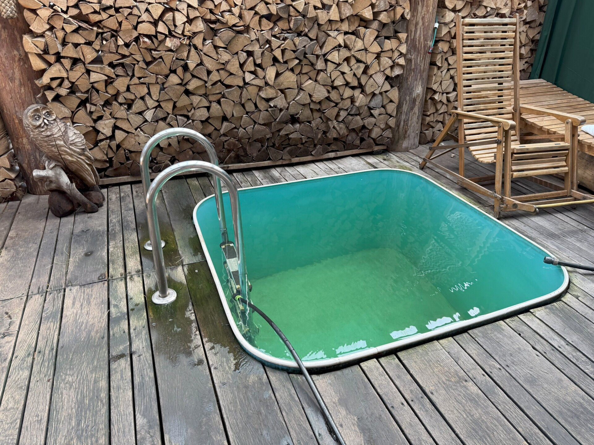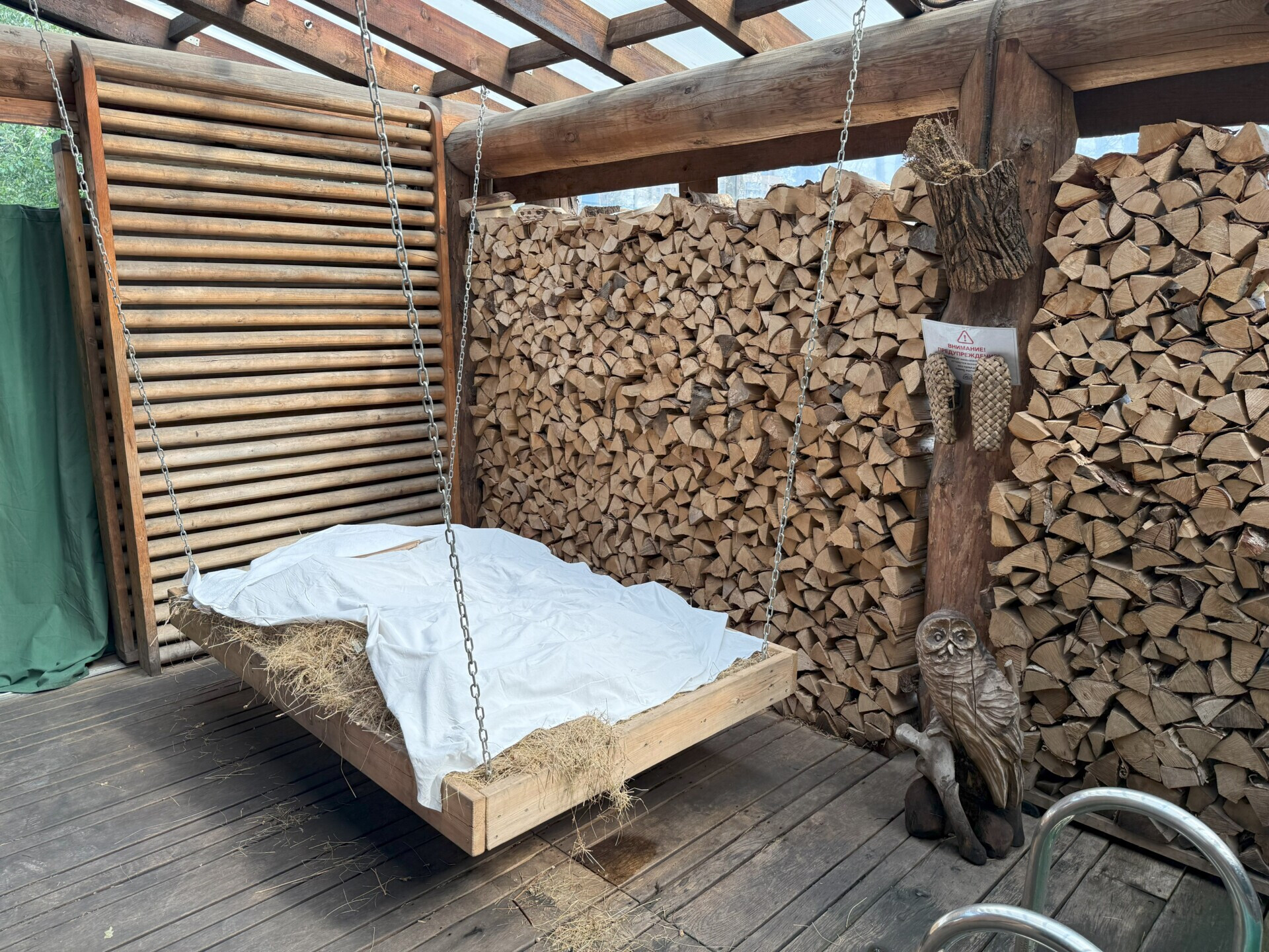 У каждой бани здесь есть свой выход на террасу. По сути, они у всех примерно одинаковые: сеновал, качель и ледяная купель.