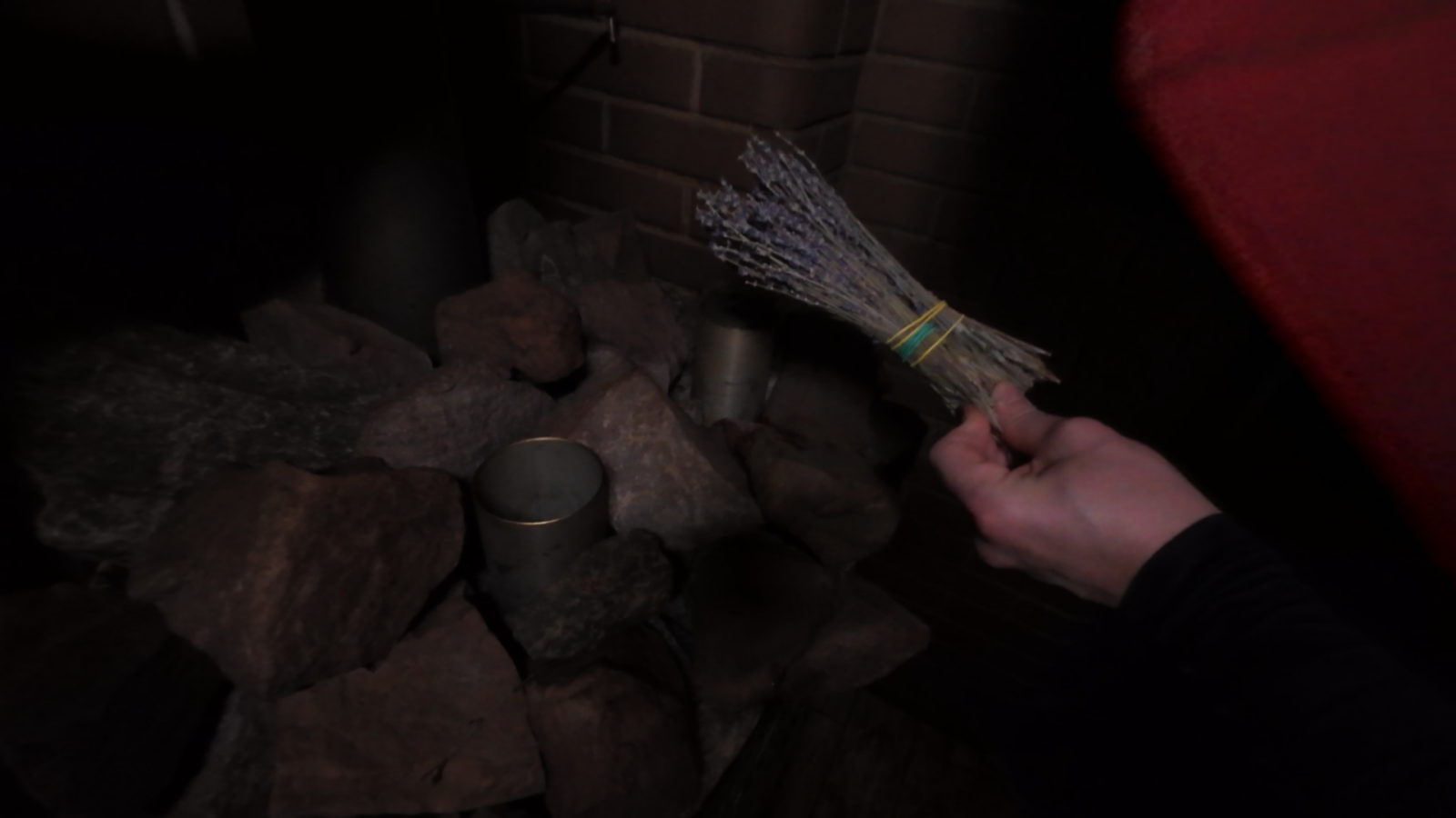 Когда приходишь, снаружи тебя сразу встречает подготовленный теплый чан. Причем не просто чан с водой, а с заварным мешочком на травах. И запах чувствуется уже прямо с улицы — это сразу создает нужное настроение.