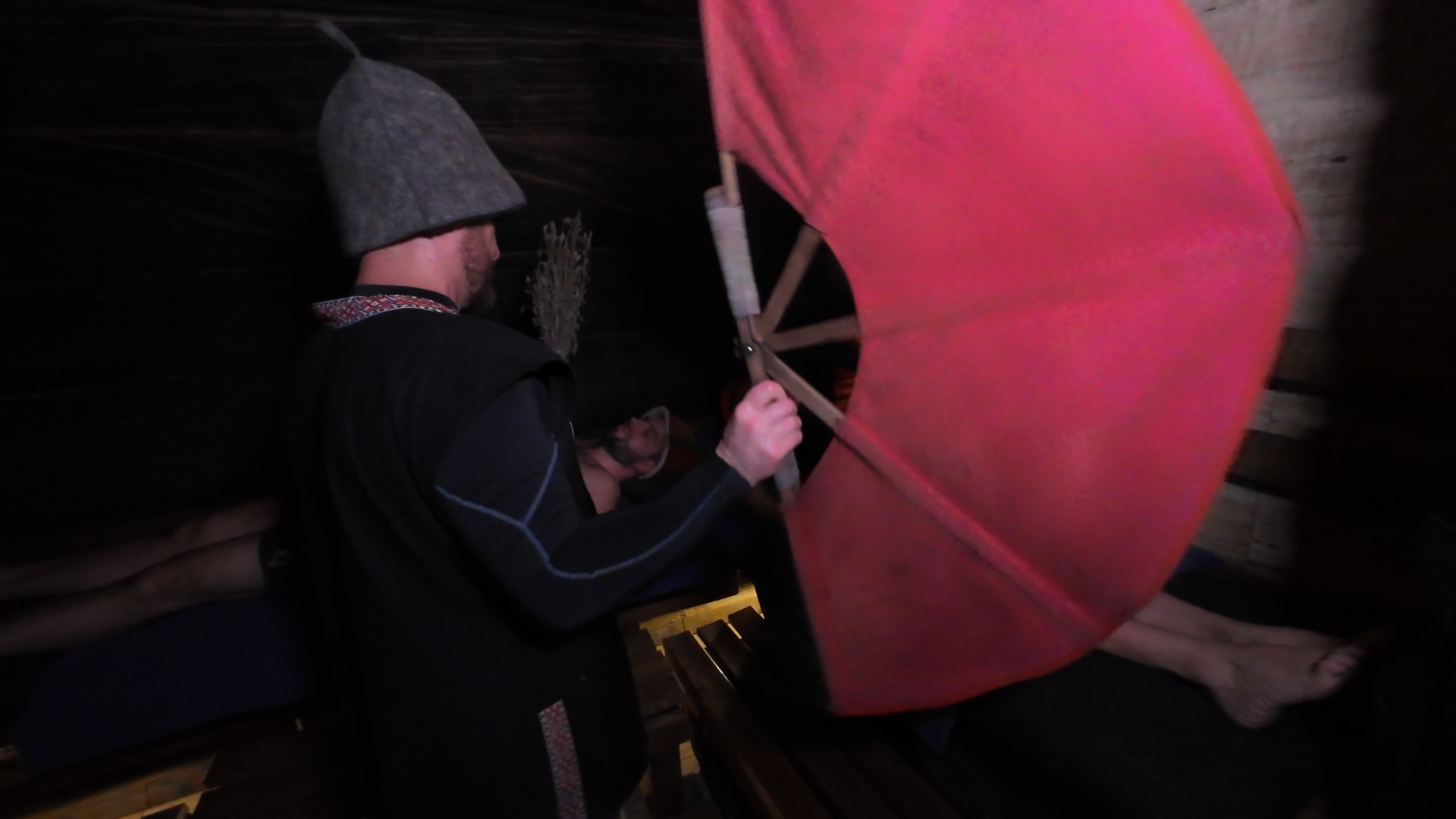 Из необычного здесь был массаж руническим топором. Сразу уточню: в основную программу это не входило. Я просто отдельно попросил показать это для кадра и самому попробовать, и мне пошли навстречу.