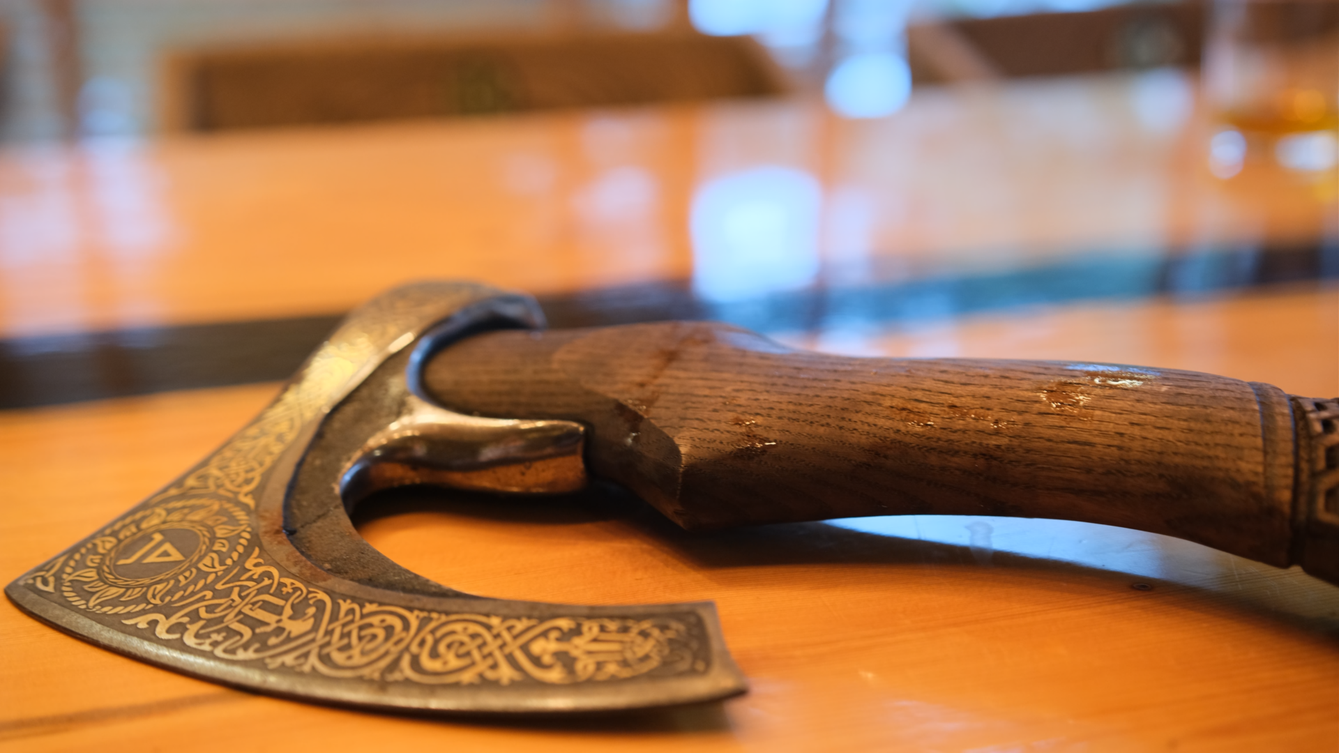 Сам топор, кстати, реально красивый — видно, что с ним заморачивались, там есть гравировки, выглядит эффектно. По ощущениям это тоже довольно необычно. Но если честно, я бы не стал переоценивать эту историю.