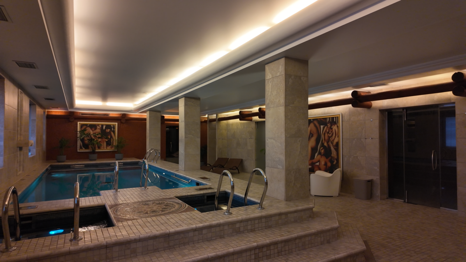 Мыльная зона, бассейн и хамам
