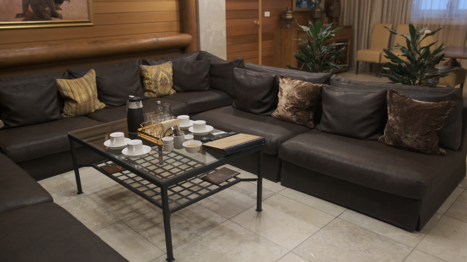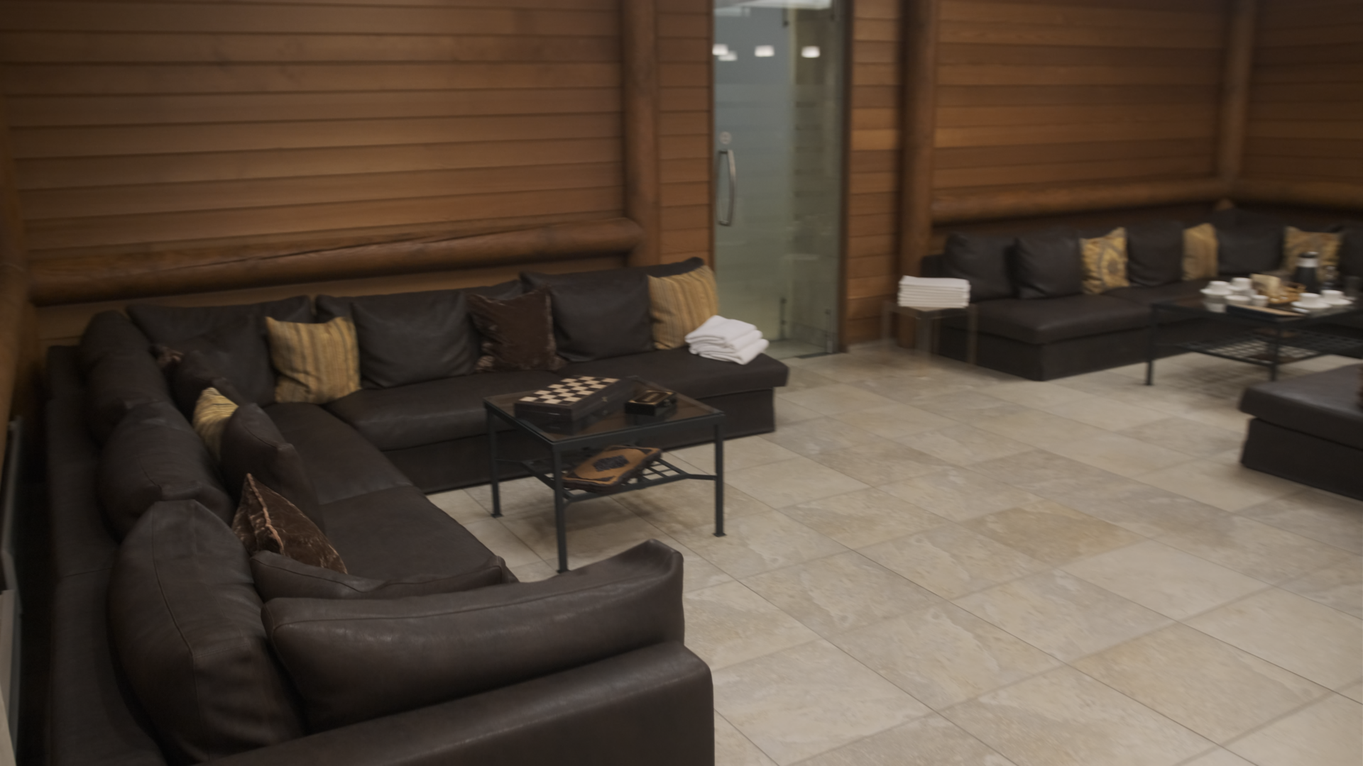 После всех процедур мы вернулись в большую основную зону отдыха. Там стоит огромный диван, большой стол, и, насколько я видел во время своего визита, был еще бильярдный стол. Но я был в 2025 году, и, насколько знаю, потом его могли убрать. Так что лучше этот момент уточнять заранее.