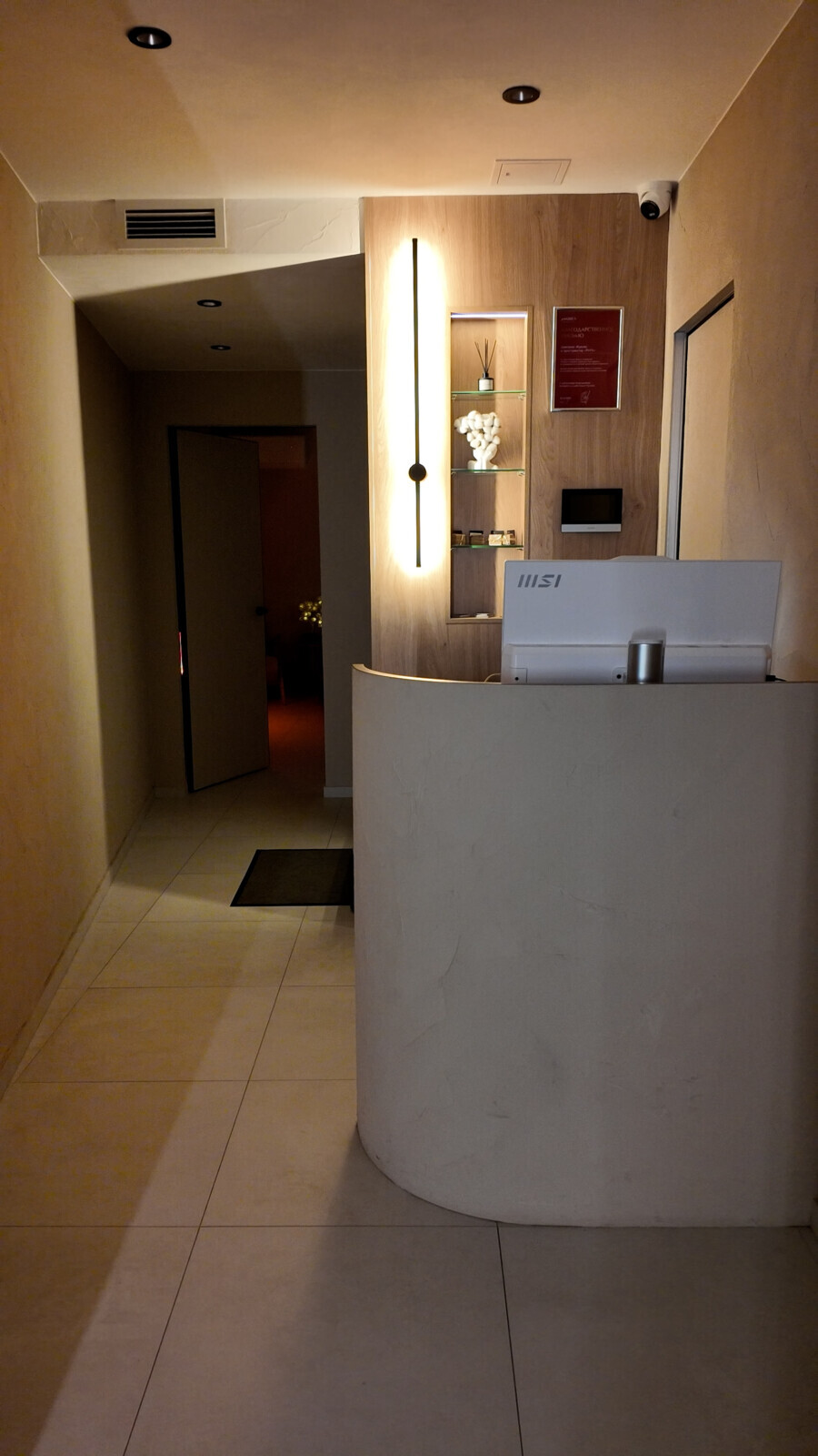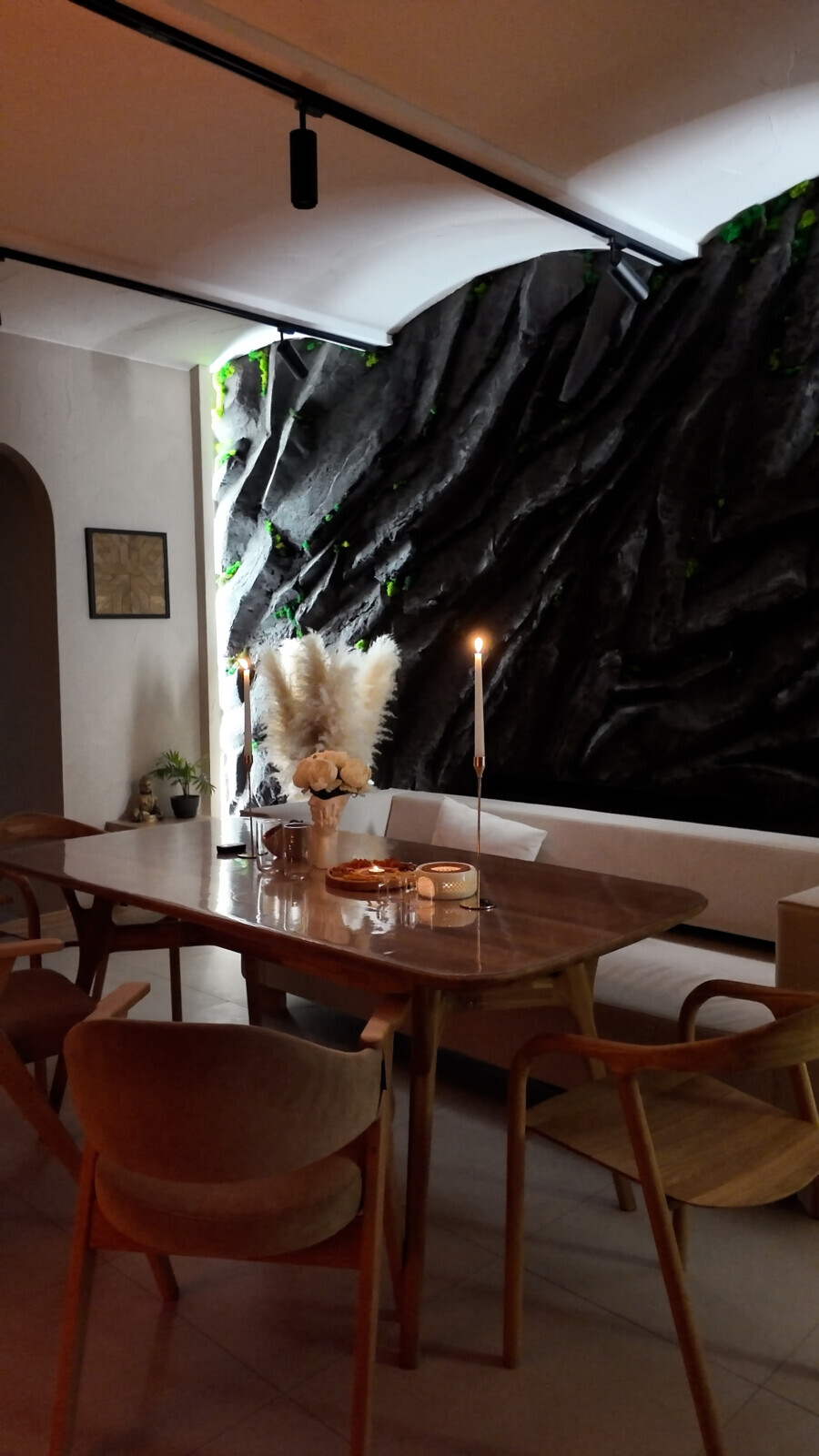Сразу при входе идет аккуратная входная группа с красивыми узорами на стенах. Уже с порога понимаешь, что место сделано в современном стиле, с упором на атмосферу и визуал.