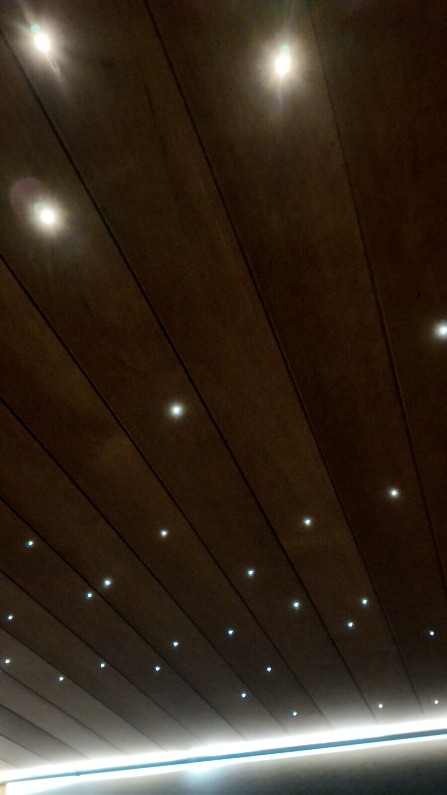 Одна предназначена для коллективных парений. Она не огромная, но сделана удобно, с разными уровнями полков. При желании там вполне может разместиться вся компания до шести человек. Плюс сделано звездное небо, как сейчас часто любят делать в современных банных пространствах.