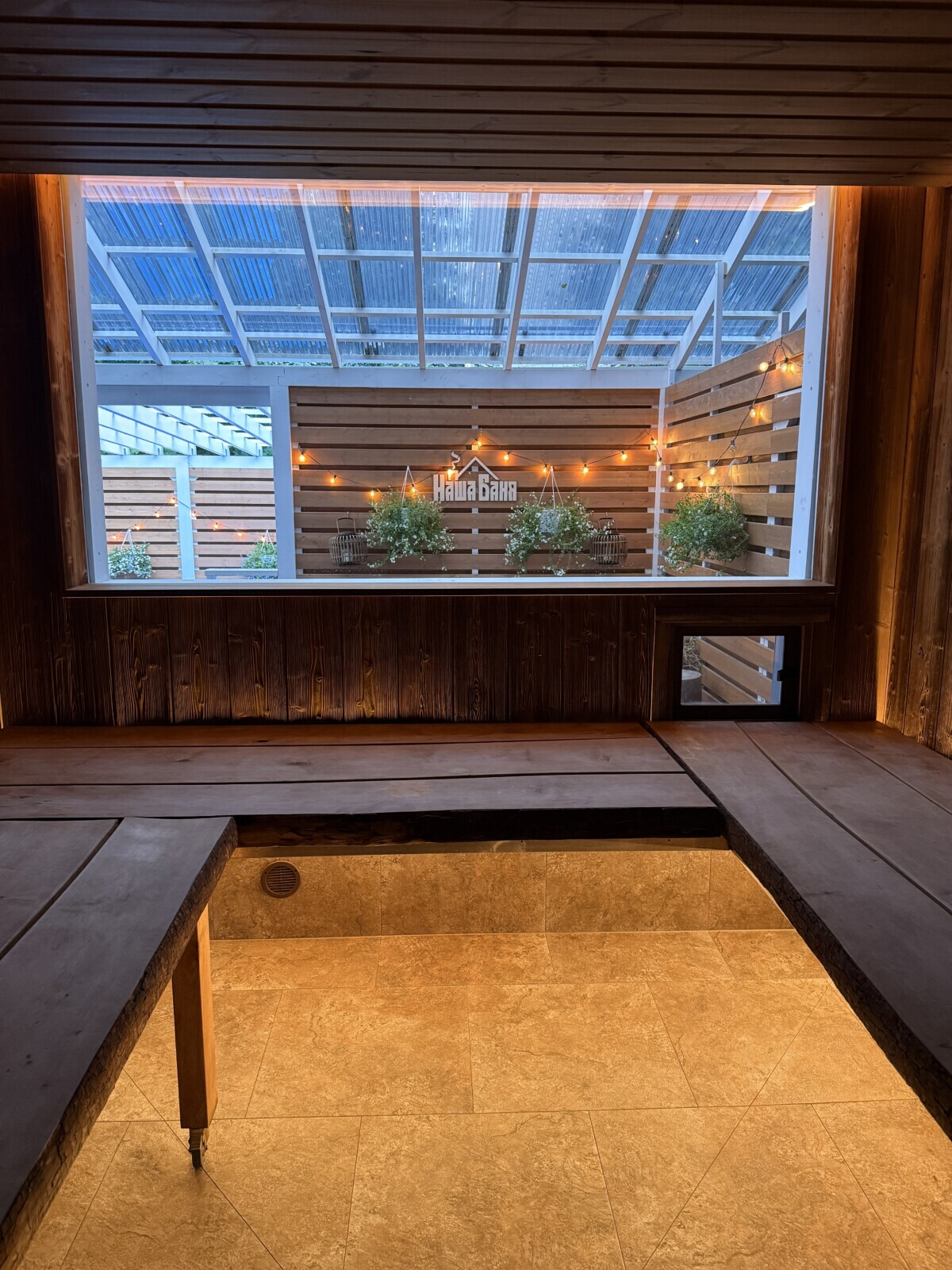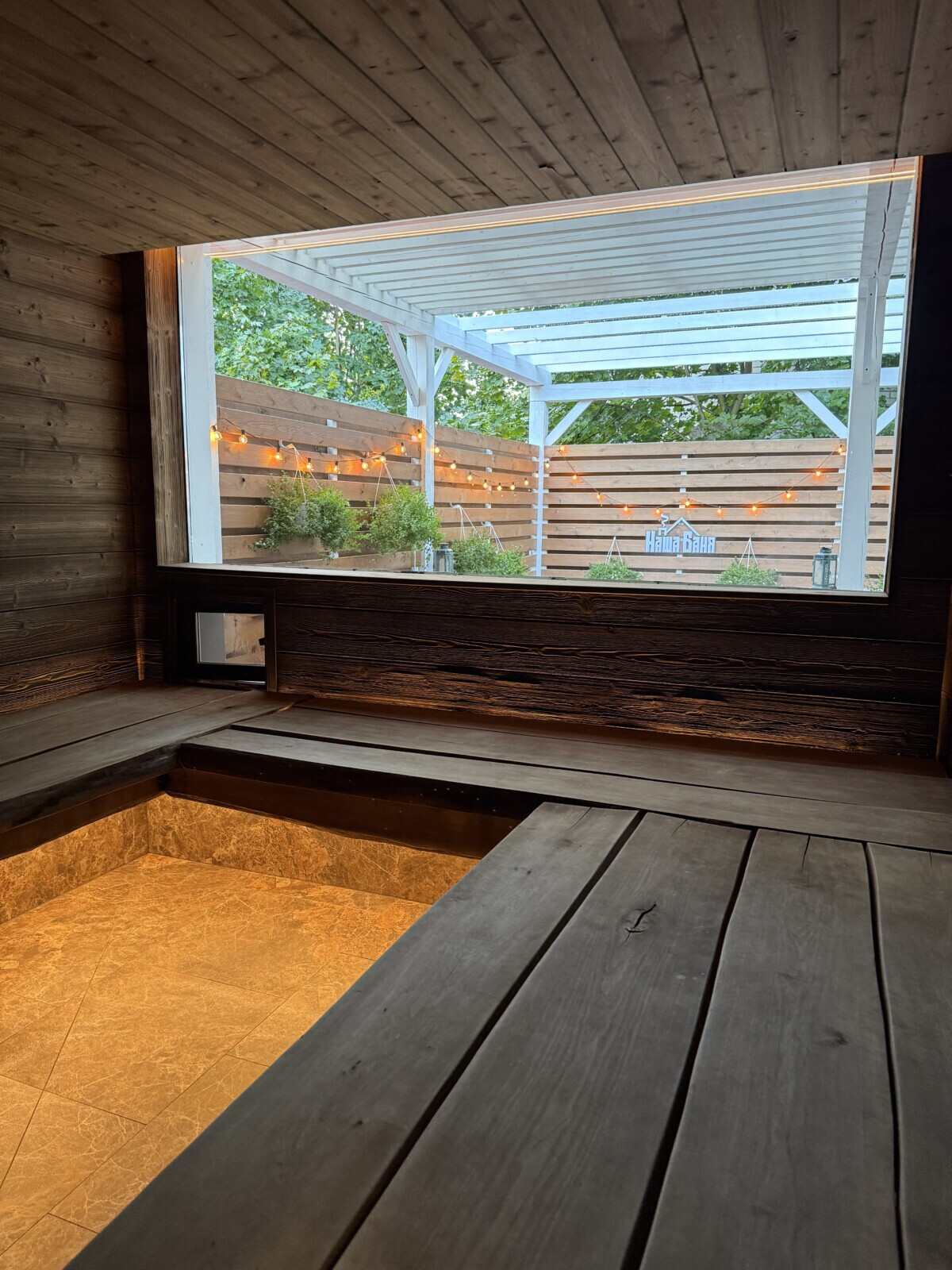 - панорамное окно в парной;