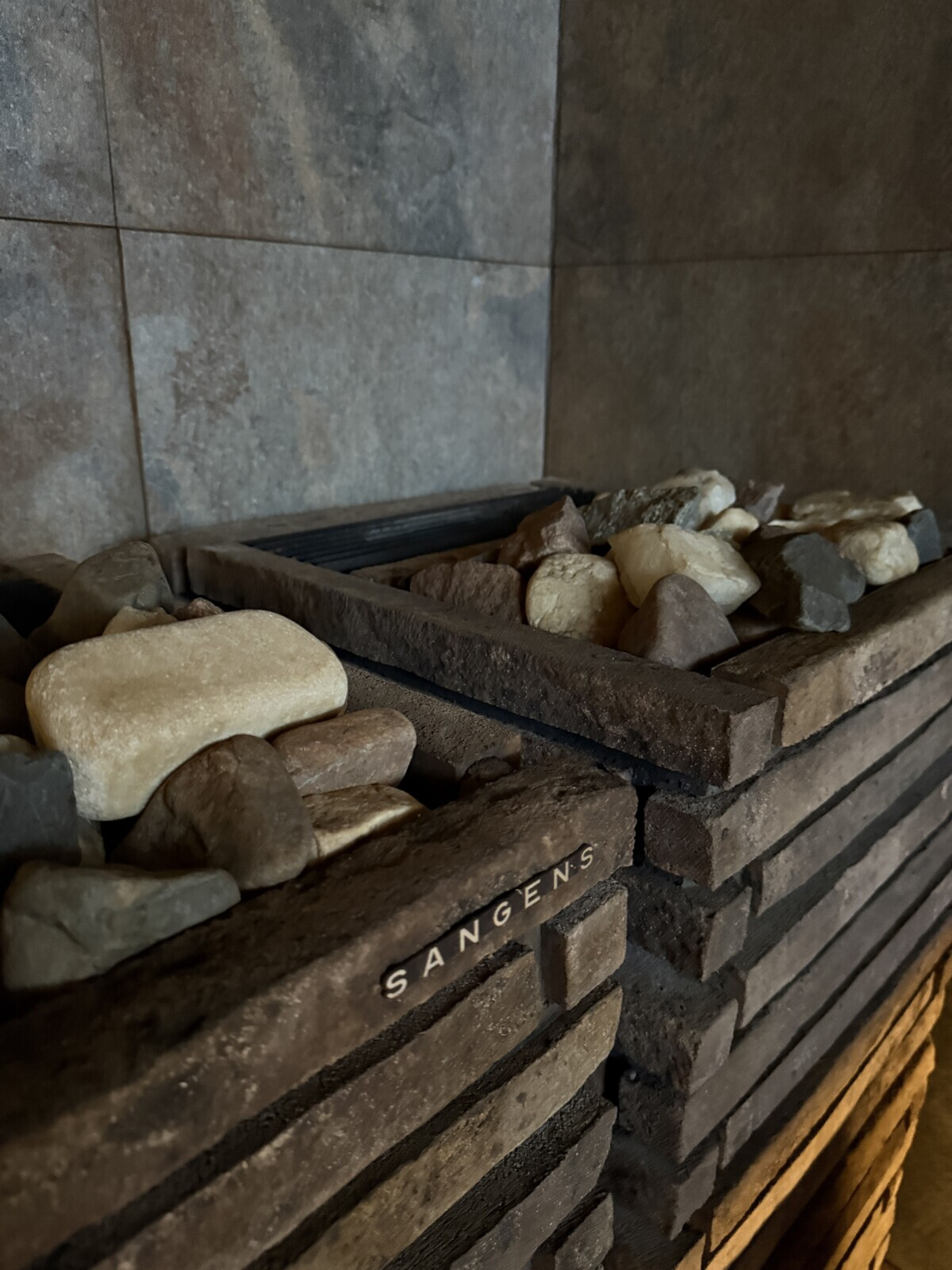 В парной установлена электрическая печь Sangens. Сама парная получилась действительно удачной: она удобная для парения, хорошо продумана и с точки зрения конструкции, и по атмосфере.
