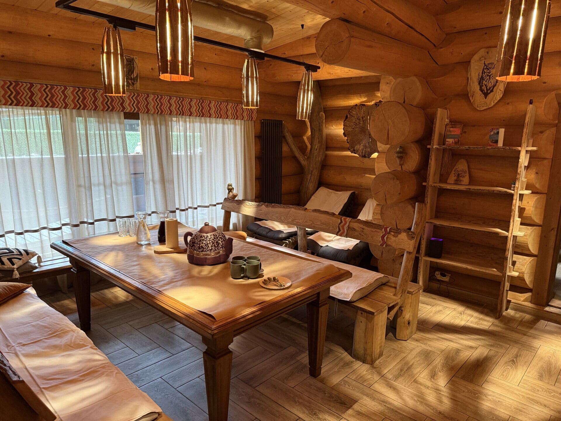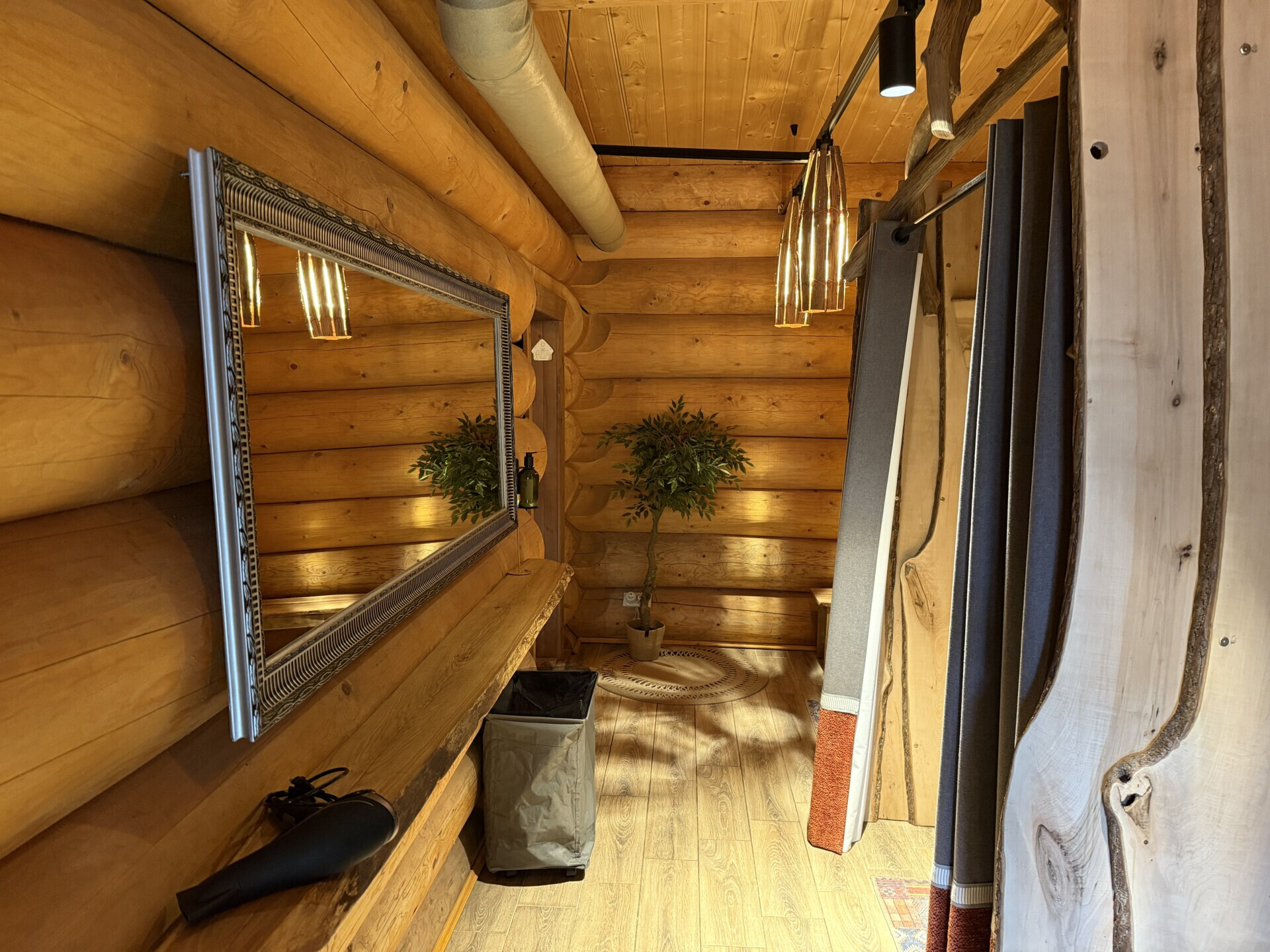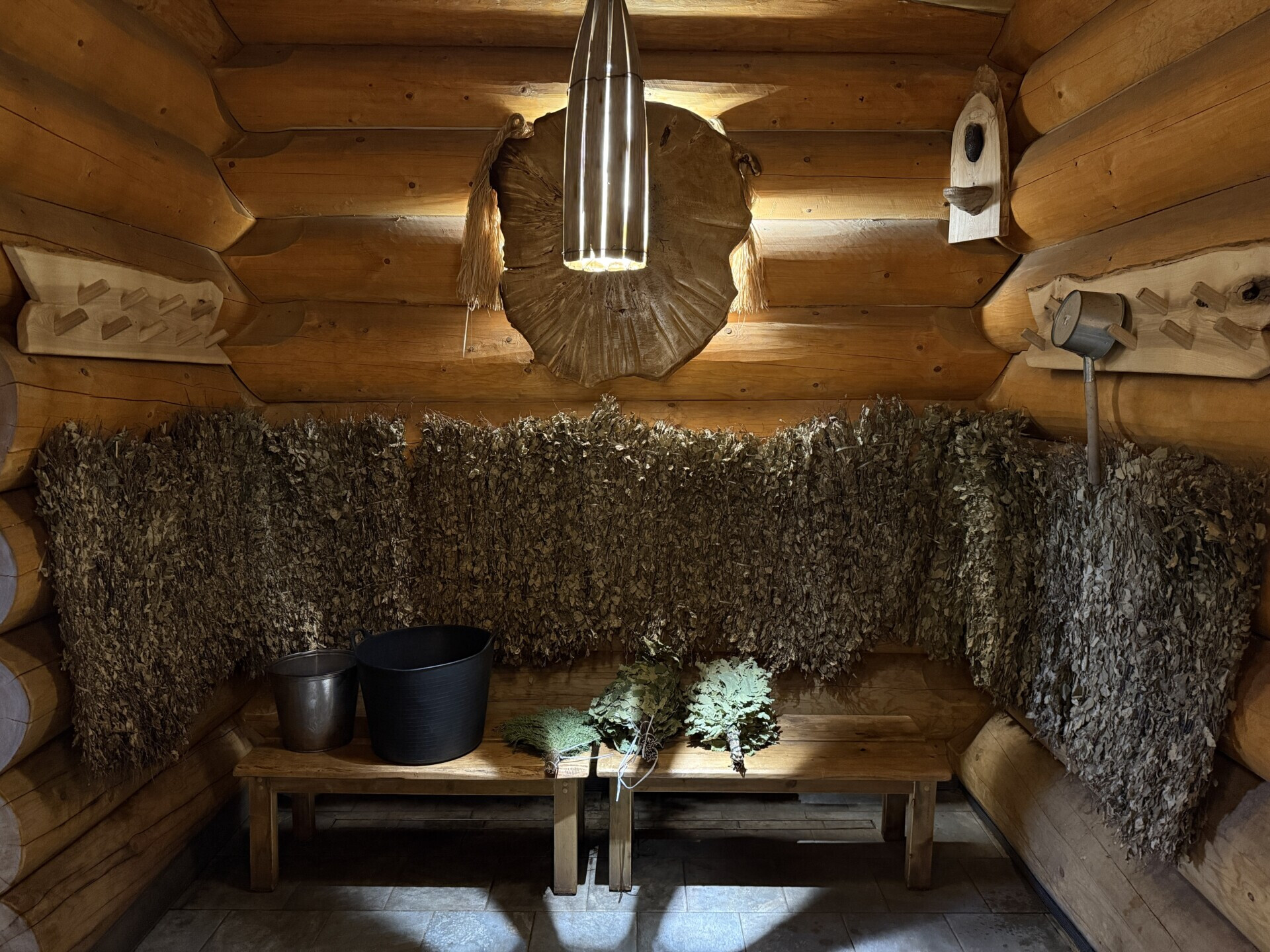 Больше всего мне здесь запомнился именно дизайн. Вроде бы баня как баня, но по деталям видно, что с интерьером реально поработали.
