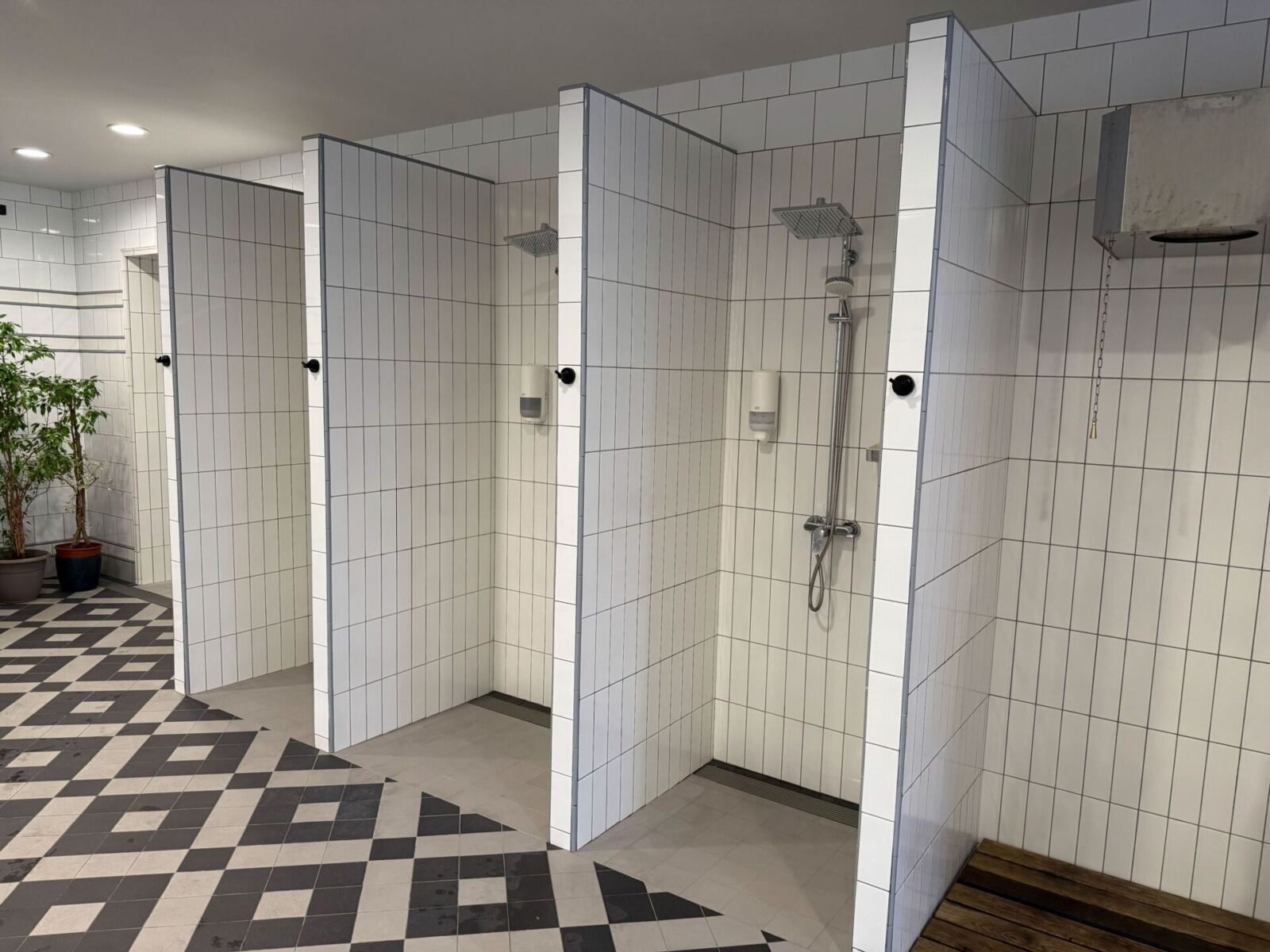 Когда заходишь в мыльную зону, сразу видно, что ремонт свежий. Белая плитка, чистота, аккуратность — все это вместе выглядит очень приятно. Прямо реально кайфово смотрится.
