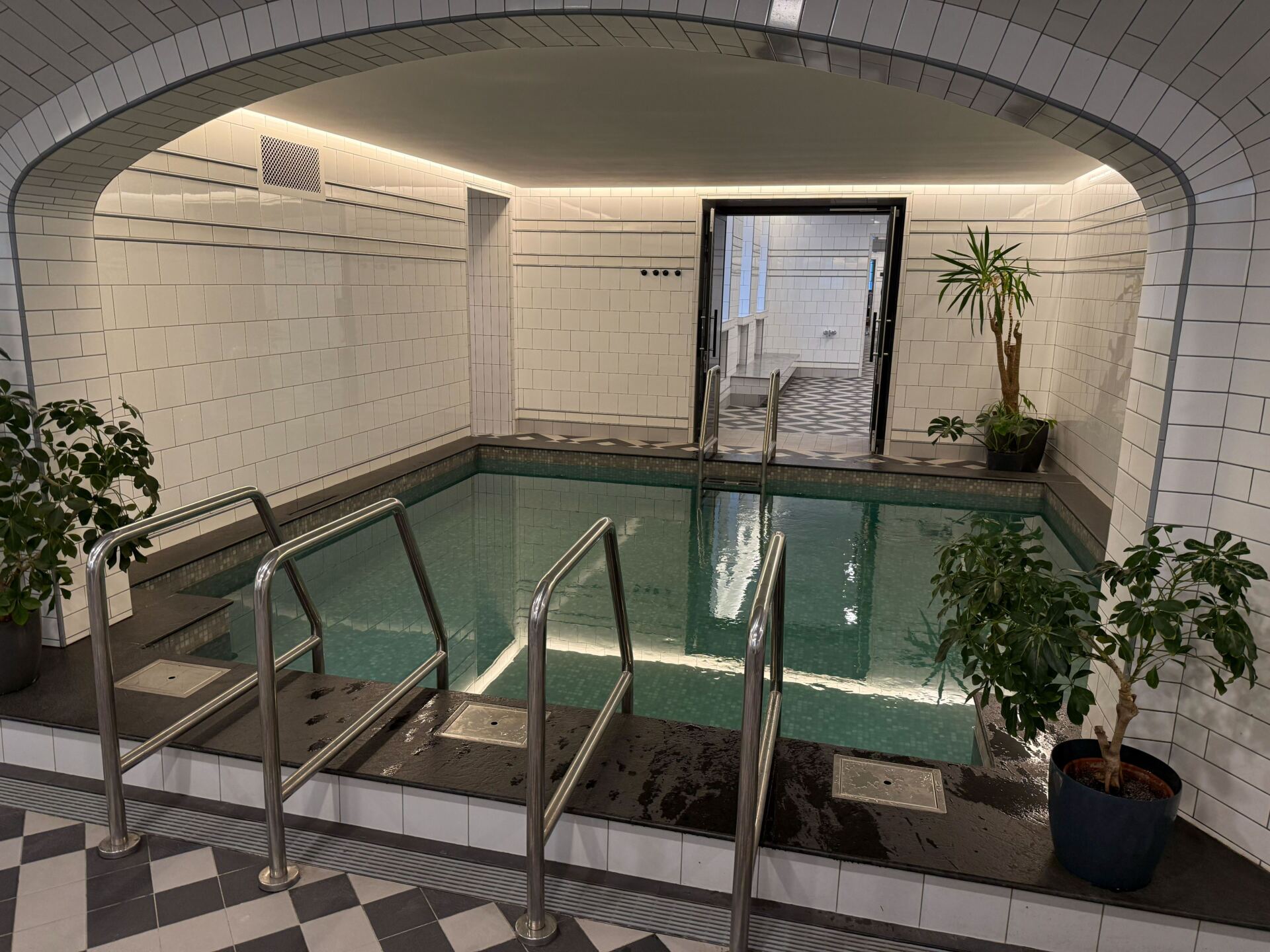 Также в бане есть теплый бассейн — тоже приятное дополнение, если хочется не только контраста, но и более расслабленного отдыха.