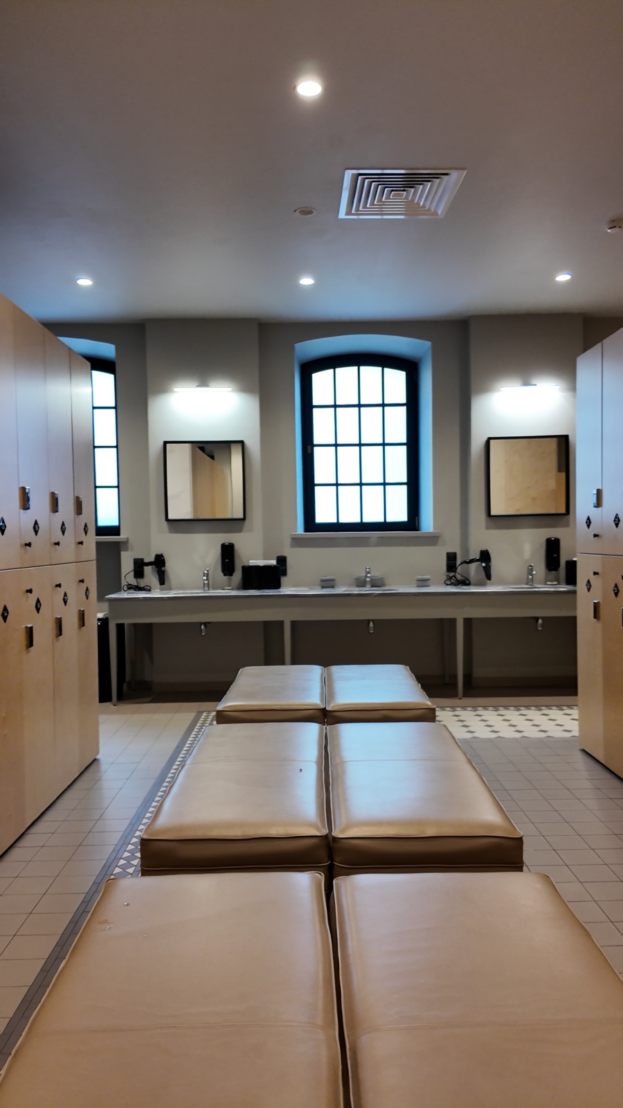 Раздевалка здесь просторная, и это прям чувствуется. Есть все, что нужно: фены, зеркала, разные принадлежности, ничего не надо искать по углам.