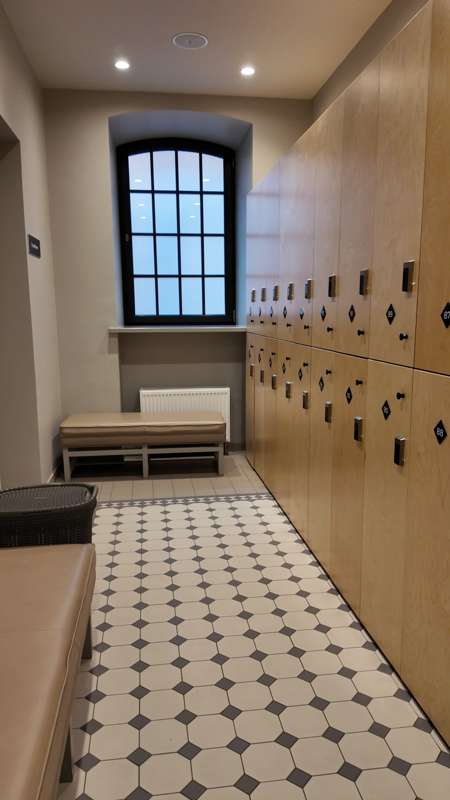 Отдельно отмечу шкафчики — они большие, на магнитных замках. И вот это реально удобно. Потому что в некоторых общественных банях часто проблема простая: приходишь с рюкзаком, вещами, курткой — и в шкафчик влезает что-то одно. Здесь с этим вообще нет вопроса. Места с запасом, все помещается спокойно.