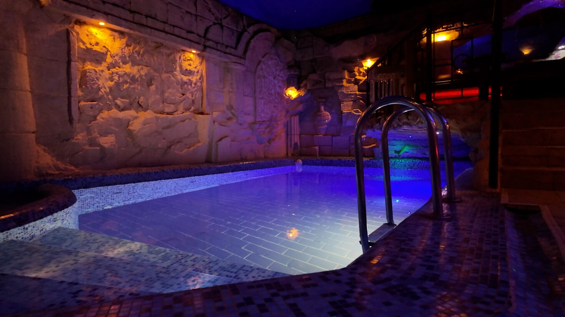 Душевая зона, бассейн и мягкий уголок
