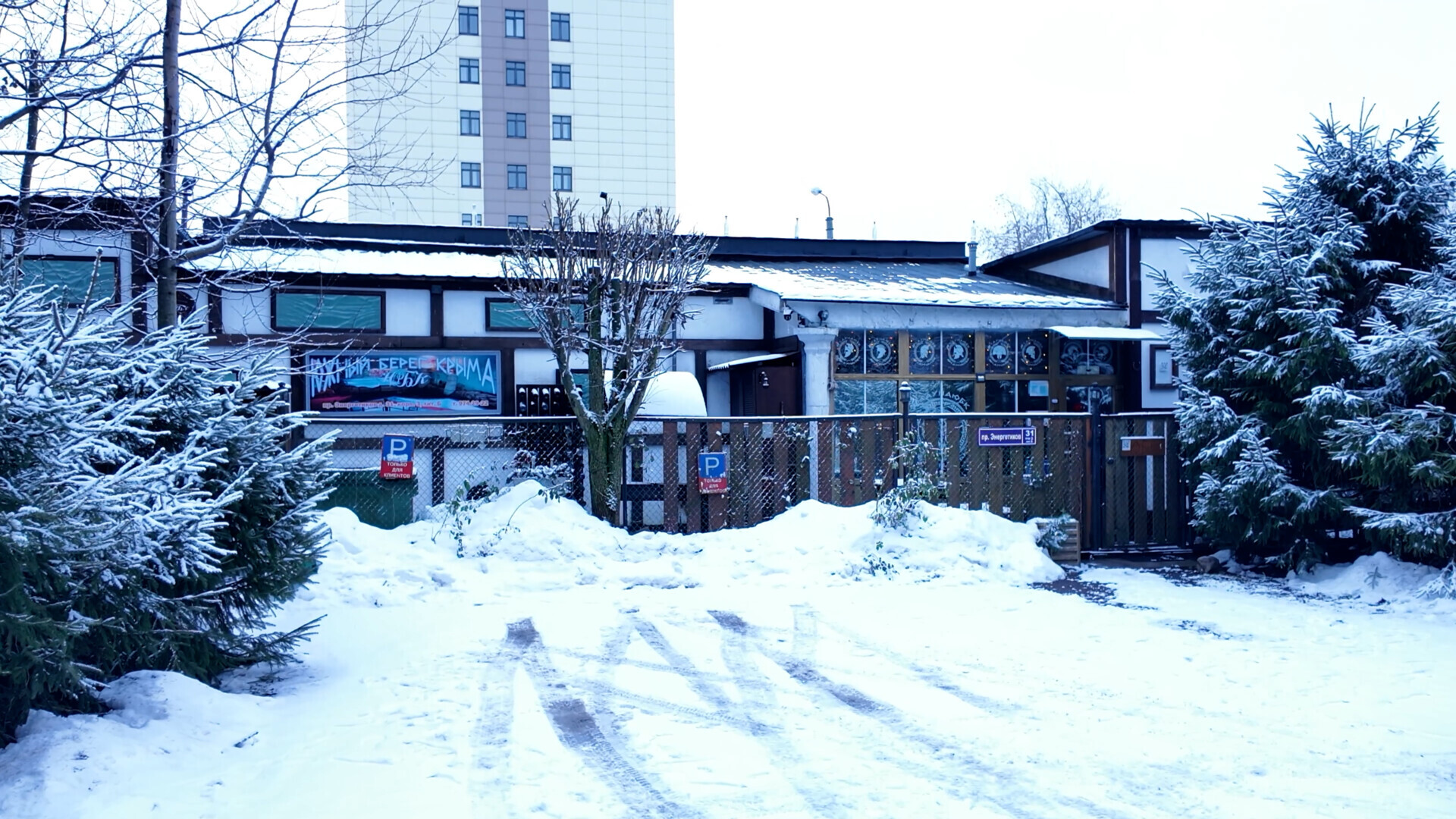 Находится сауна по адресу Санкт-Петербург, проспект Энергетиков 31, корп. 3Б. Локация в спальном районе, с парковкой проблем нет — мест предостаточно.