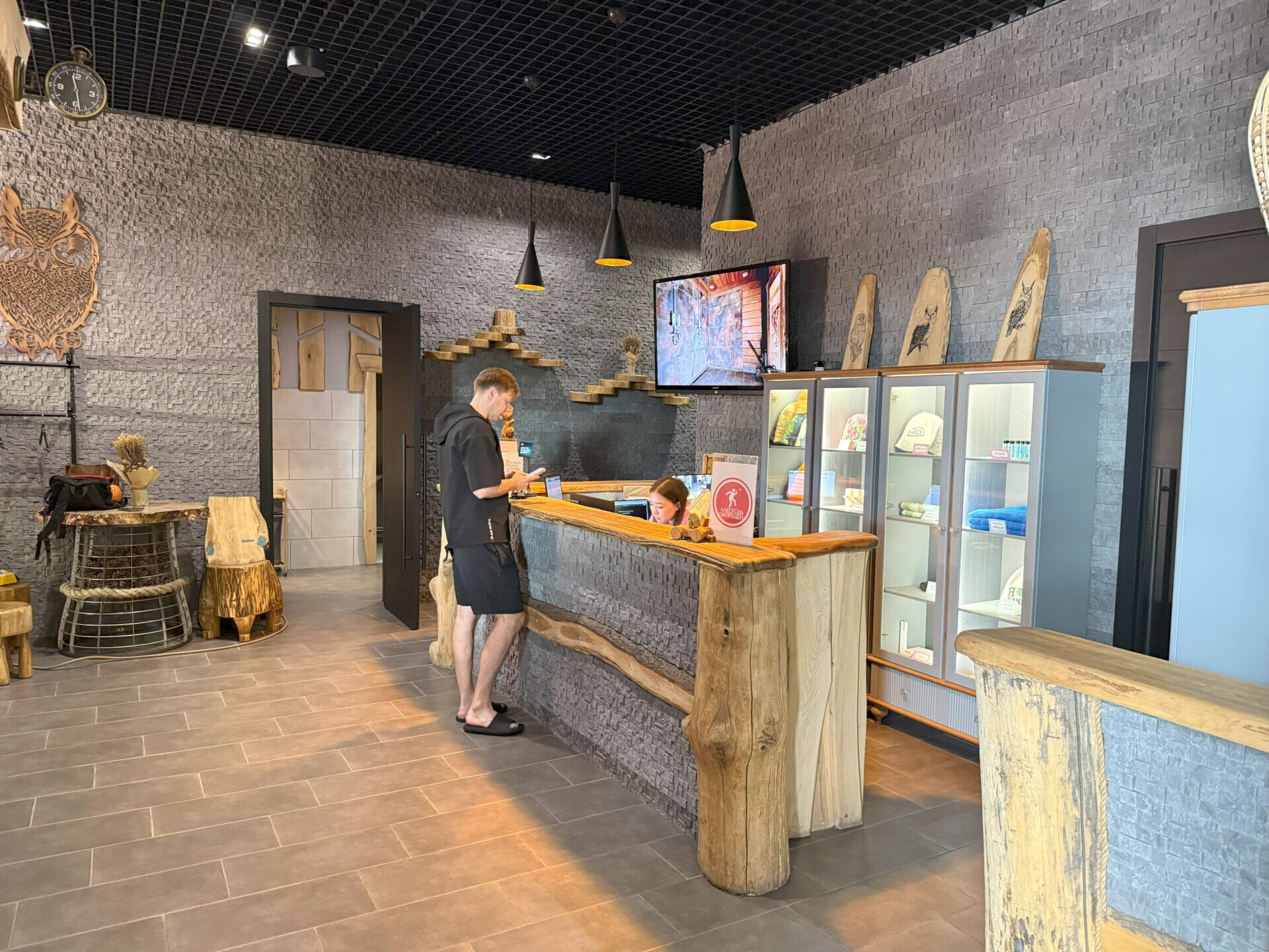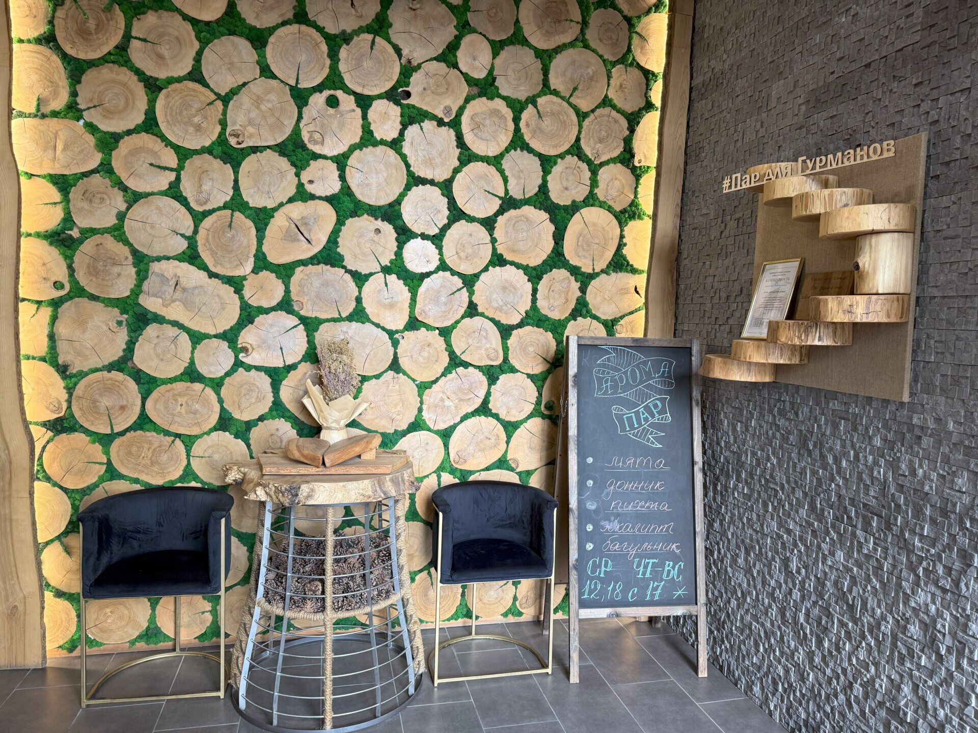Сразу важный момент: пива и вообще алкоголя здесь нет. Я просто лично знаю владельца, и он в целом против алкоголя в своей сети бань. Так что если кому-то нужен именно формат бани с алкоголем, то сюда тогда не по адресу — лучше искать другое место.