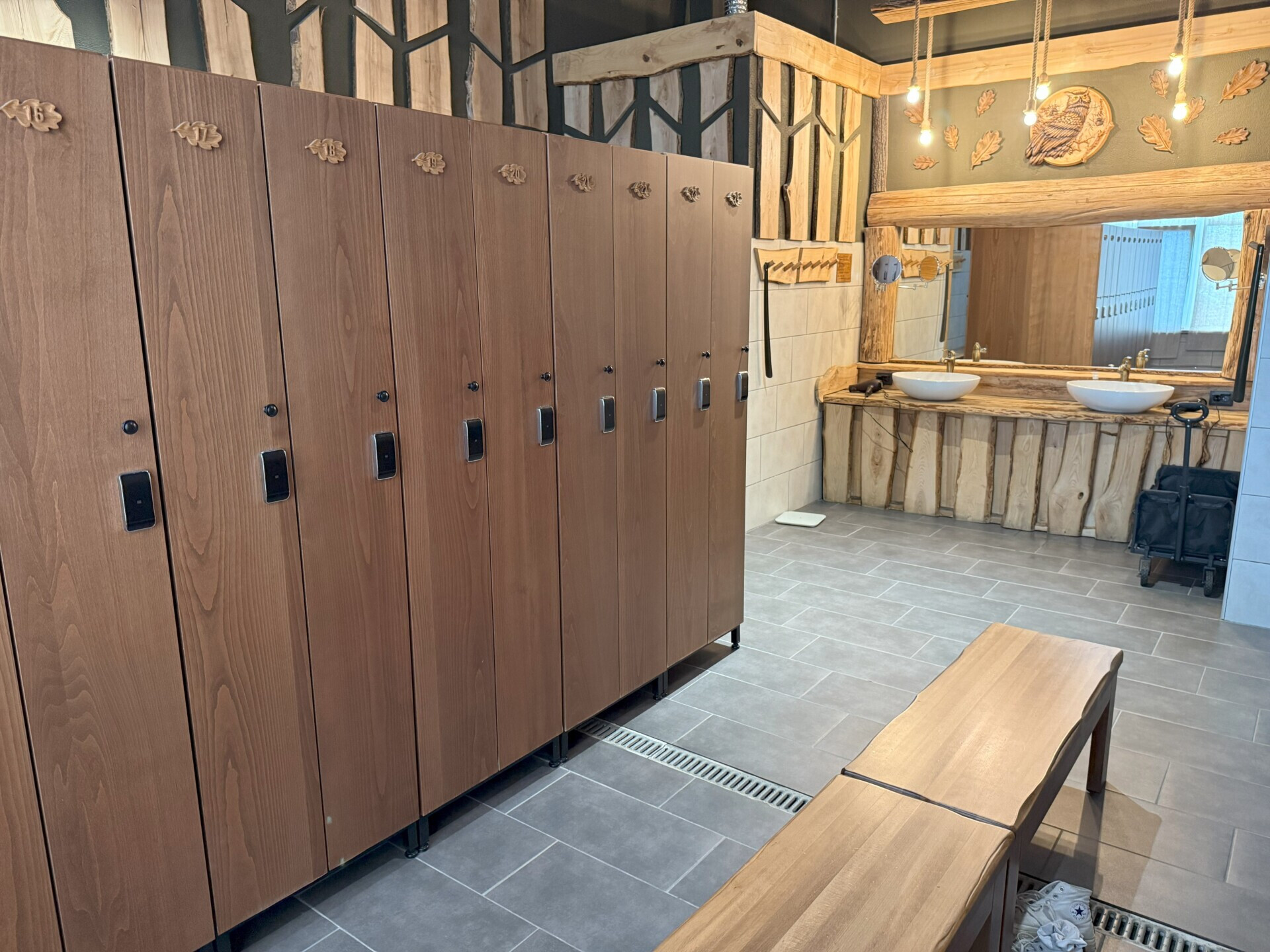 У бани есть своя парковка, дальше идет входная группа с ресепшеном. После этого попадаешь в раздевалку, если не ошибаюсь, там что-то около 40 шкафчиков. Затем уже идешь в зону кафе, где можно взять основные напитки и что-то по мелочи.